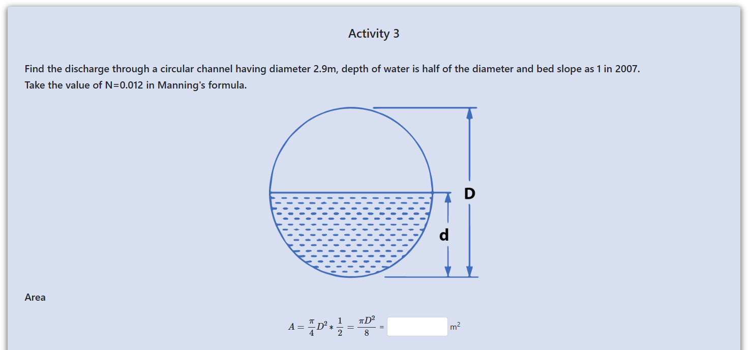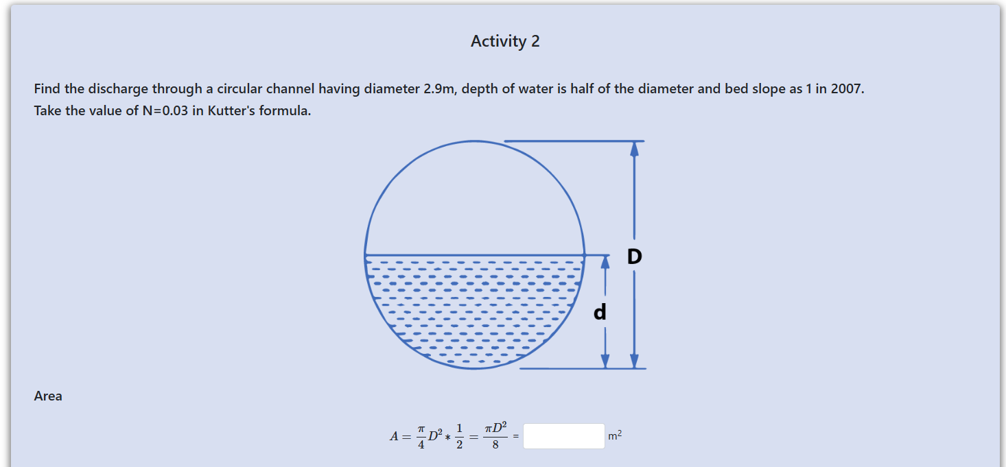 Dynamics of Fluid Flow: Flow over Circular open channel