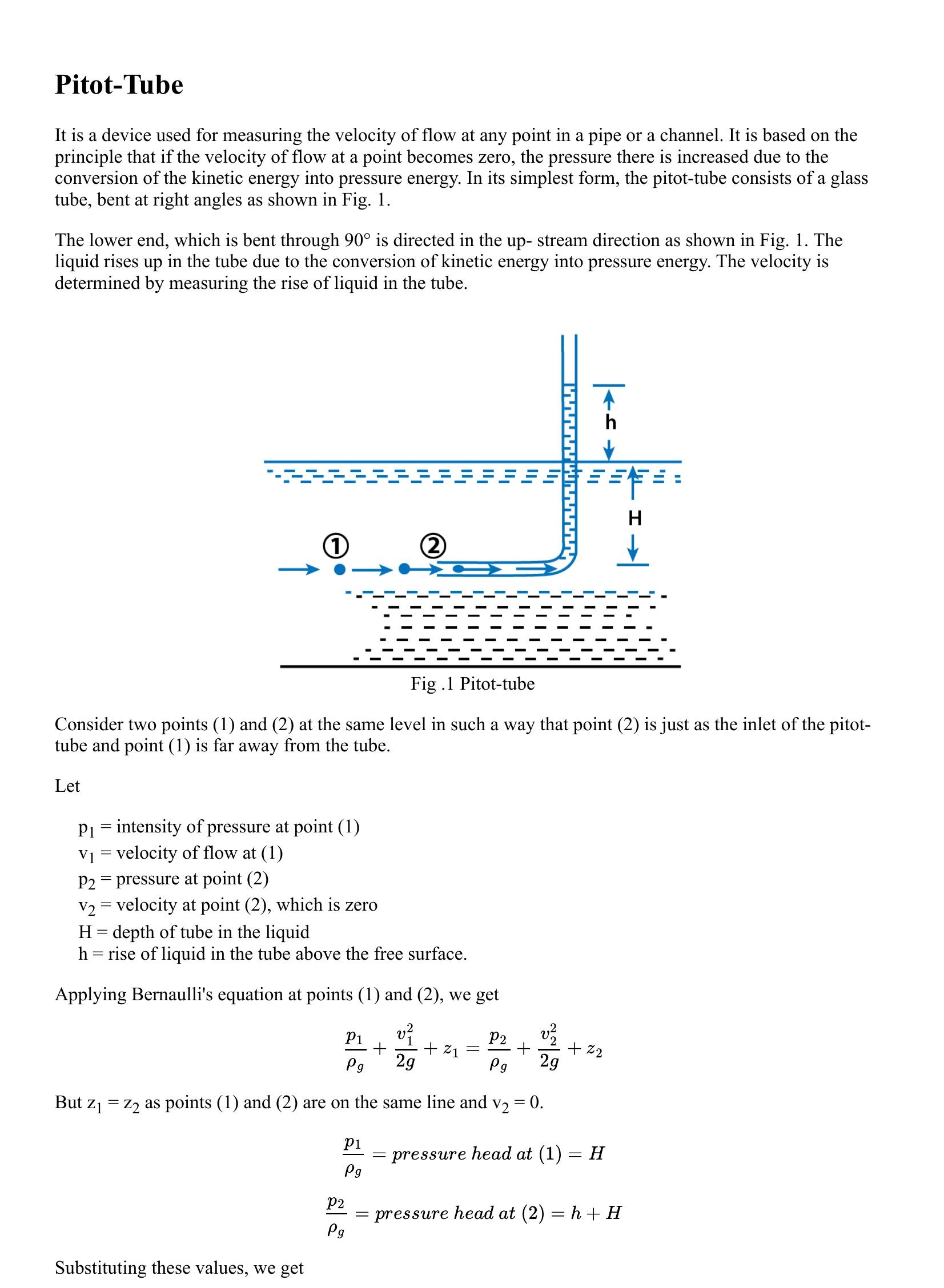 Dynamics of Fluid Flow: Pitot Tube
