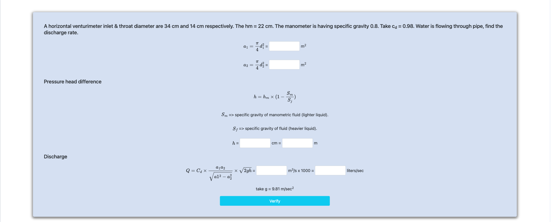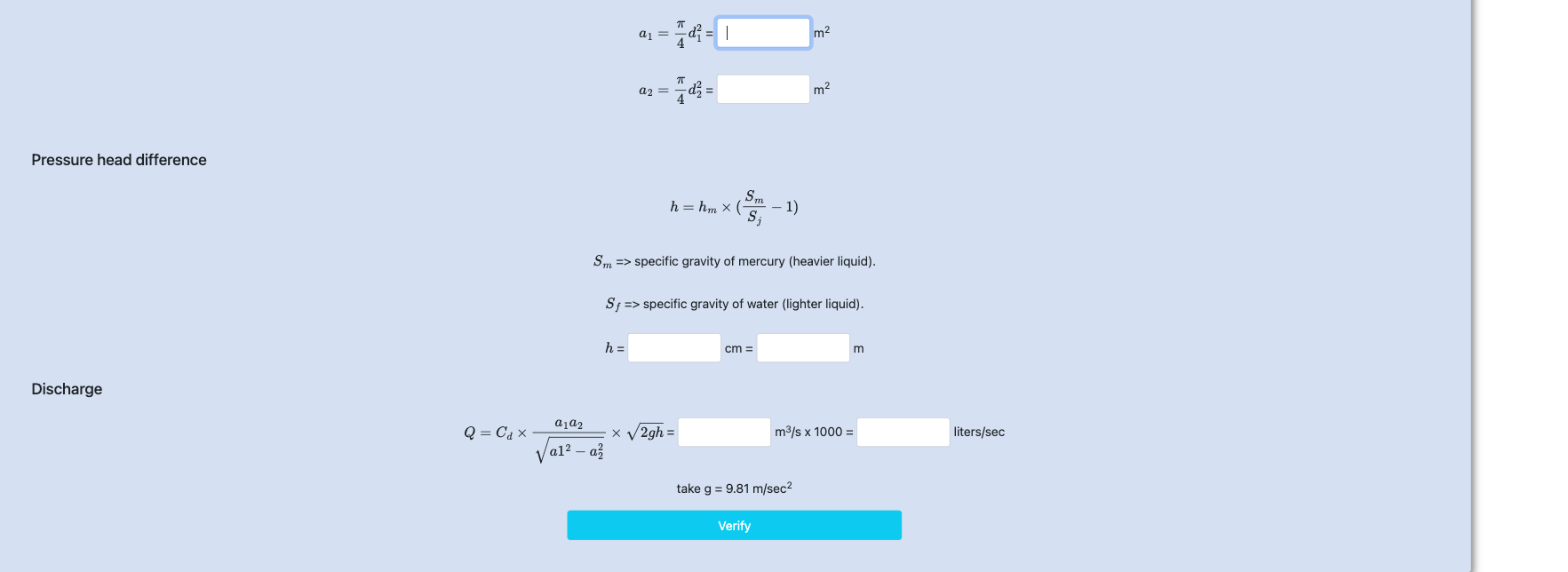 Dynamics of Fluid Flow: Flow Through Venturimeter